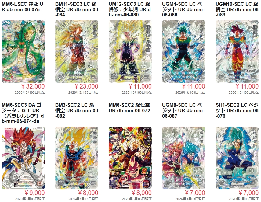 【最新】ドラゴンボールヒーローズ2026年3月の買取例一覧