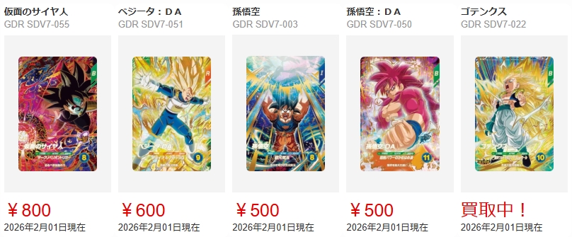【最新】ドラゴンボールスーパーダイバーズ2026年2月の買取例