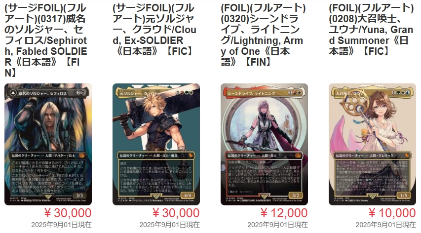 【最新】ファイナル・ファンタジー(MTG)2025年9月買取例一覧