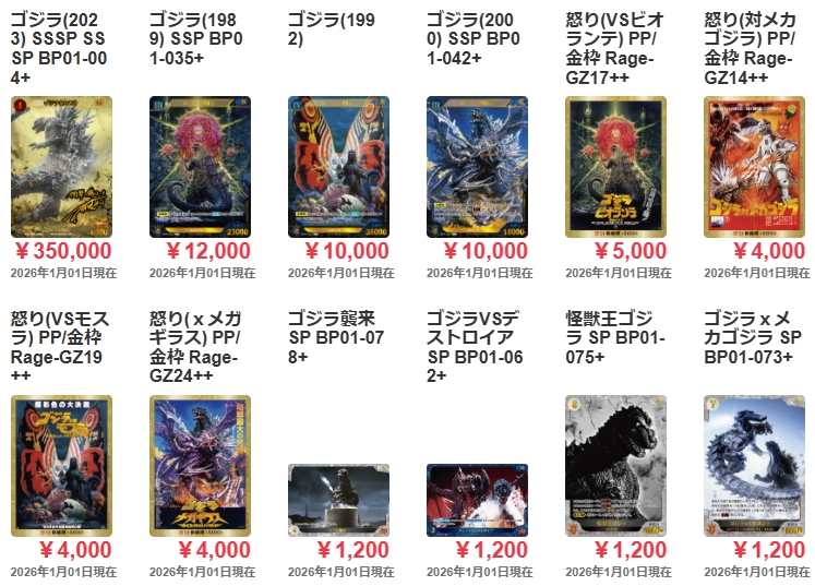 【最新】ゴジラカードゲーム2026年1月の買取例