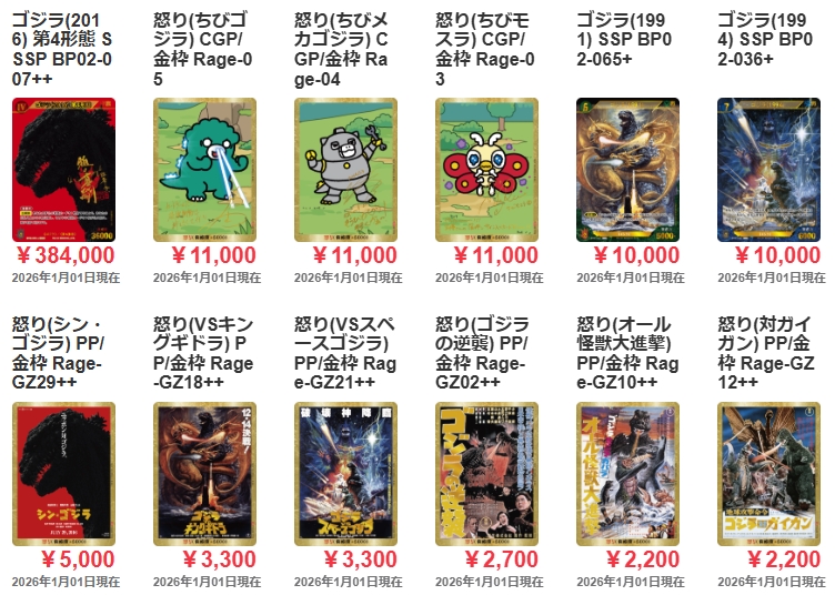 【最新】ゴジラカードゲーム2026年1月の買取例
