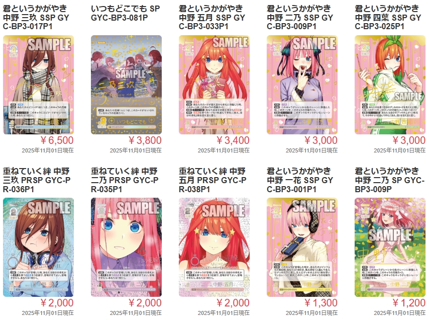 【最新】五等分の花嫁カードゲーム2025年11月の買取例