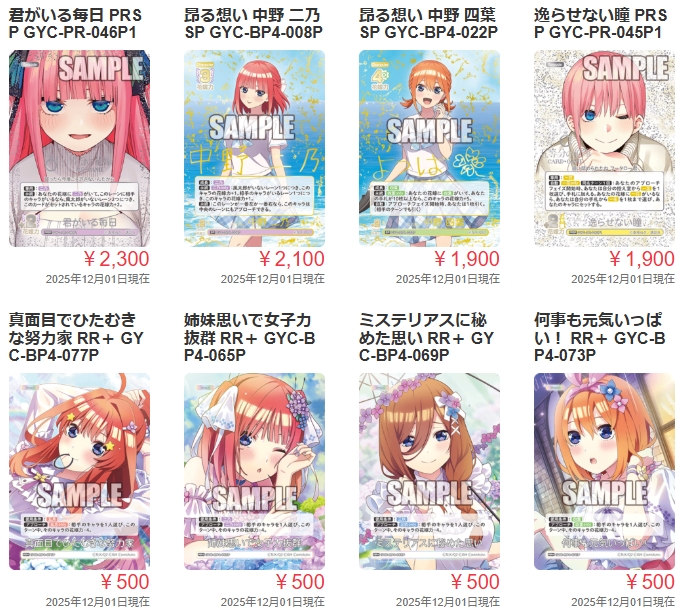 【最新】五等分の花嫁カードゲーム2025年12月の買取例