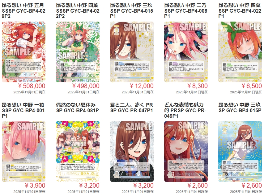 【最新】五等分の花嫁カードゲーム2025年11月の買取例