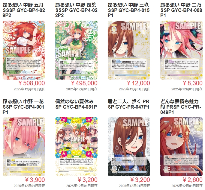 【最新】五等分の花嫁カードゲーム2025年12月の買取例