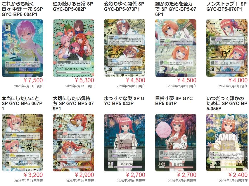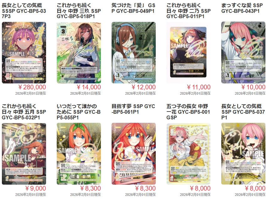 【最新】五等分の花嫁カードゲーム2026年2月の買取例