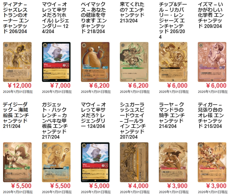 ディズニー・ロルカナは、欧米でTCGPlayer売上ランキングで上位に入るなど高い人気を誇ります。