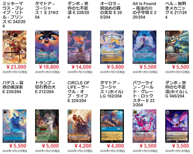 ディズニー・ロルカナは、欧米でTCGPlayer売上ランキングで上位に入るなど高い人気を誇ります。