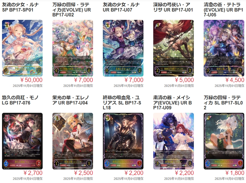 - 需要と供給: 人気キャラクターやレアカードは高値で取引される可能性があります。