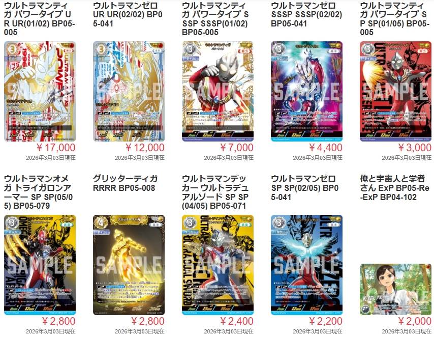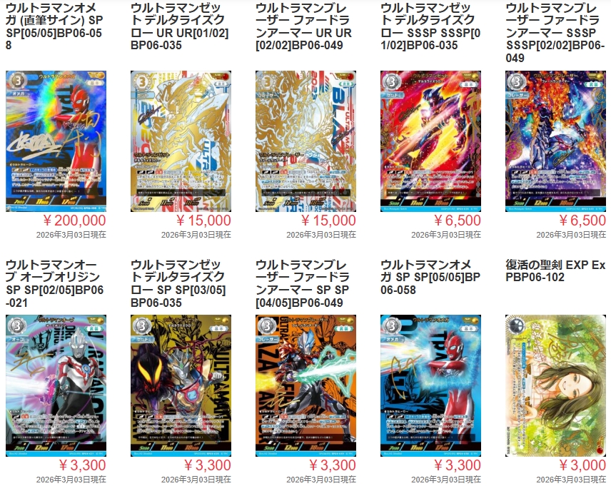 【最新】ウルトラマンカード2026年3月の買取例